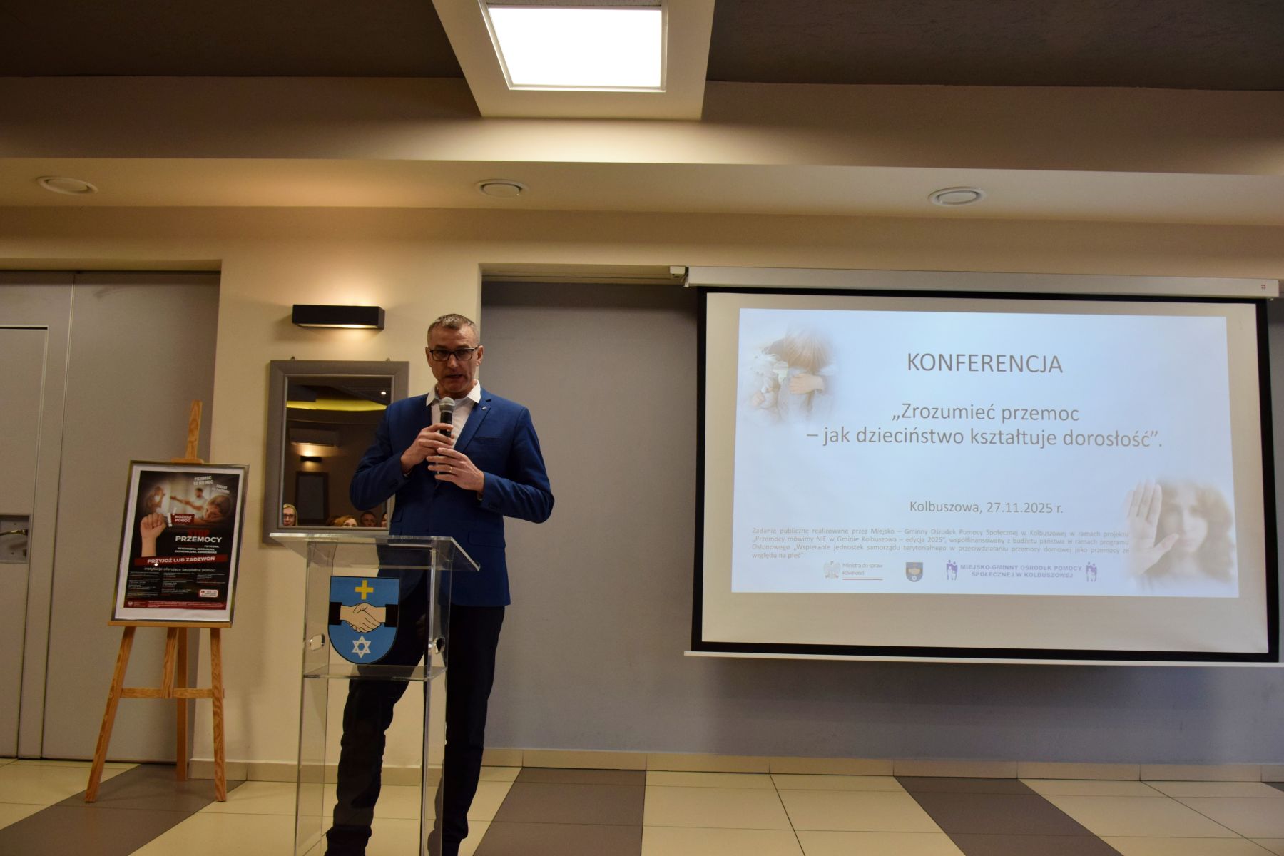 Konferencja rozpoczęła się od powitania uczestników oraz podkreślenia przez Burmistrza Kolbuszowej Pana Grzegorza Romaniuka, że temat przemocy pozostaje jednym z najważniejszych wyzwań systemów pomocy. Zostało podkreślono, że skuteczna pomoc dzieciom i rodzinom w kryzysie nie jest możliwa bez wspólnego wysiłku wielu osób, którzy reagują na pierwsze sygnały przemocy, i tych którzy towarzyszą rodzinom w dalszym procesie wsparcia.